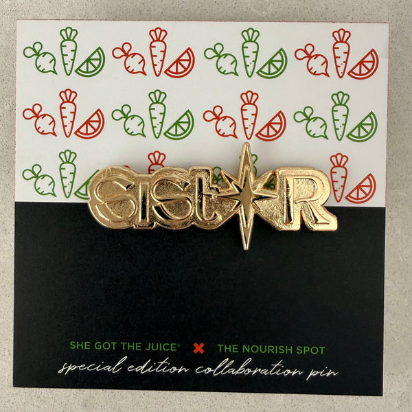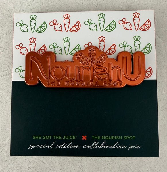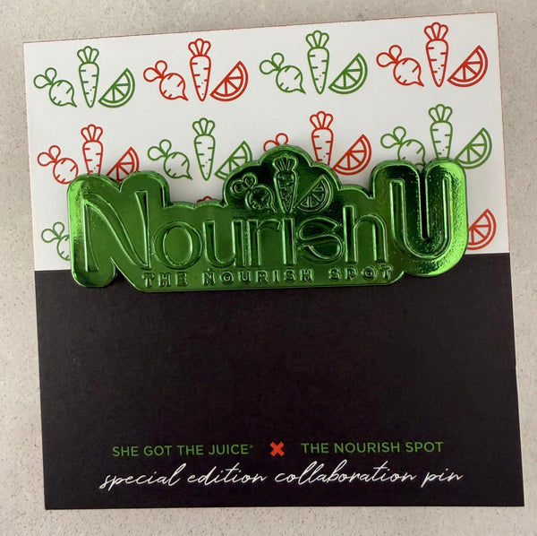 She Got the Juice × The Nourish Spot pins are wearable reminders of sisterhood, self-worth, and nourishment.